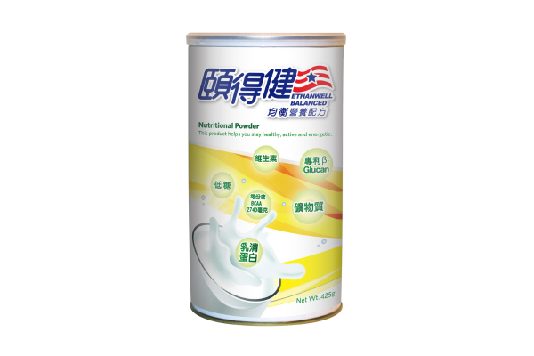 頤得健營養均衡配方每份熱量250大卡,含6.75公克高優質乳清蛋白,支鏈胺基酸(BCAA)含量2740毫克。含糖量低於三公克。